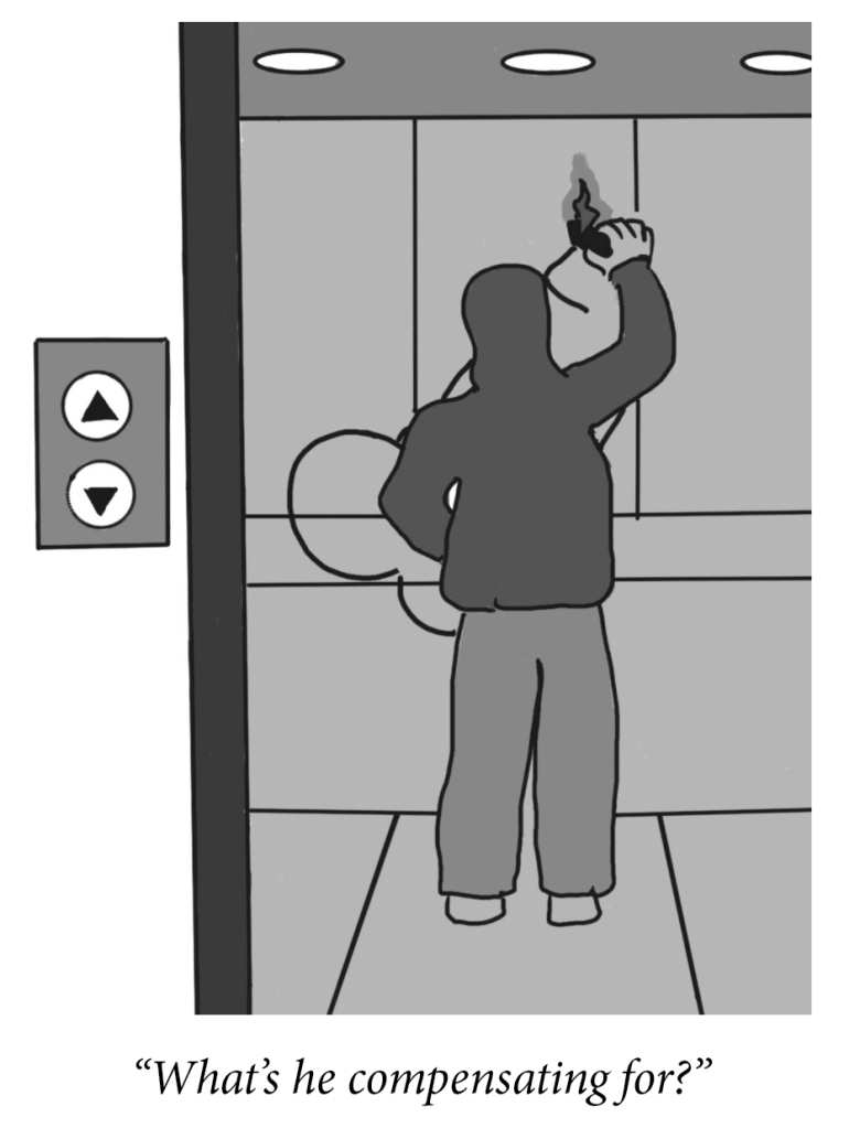 At 10:58 p.m. on Tuesday, March 24, residential staff noted the first works of Woodlawn’s phallic artist. The method, per the leading theory, was a butane torch. His debut works are concentrated in the East Wing, but are also spread across other wings and floors, as well as three elevators. They consist of phallic depictions permanently burned into place, ranging, by my estimate, from three to nine feet in length. The artist did not, at any point, deviate from this theme.